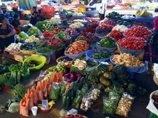 Today, Saturday, we spent the morning cleaning and doing laundry. We took a break to go to the Chocofruta store, where a lady sells chocolate-covered fruit out of her kitchen window. One stick only costs 1 quetzal (13 cents!). So far this week, I have tried strawberry, watermelon, and mango. Then, Elena and the boys took me to the big market, where I was overwhelmed by the huge variety of fresh fruits and vegetables, as well as dried beans, rice, and nuts. It is much more fun to shop here than at a boring Jewel-Osco.