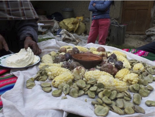 Jeff and I visited work sites to start planning for the team coming from Wisconsin. At Sicuani we were invited to share a welcome lunch of choklo and habas (corn on the cob and fava beans), boiled potatoes and homemade cheese. (See photo at right) Pastor Juan Paz and Coordinator Filipe Ramos, with whom we work closely, spoke in Aymara with the local folks about the mission’s projects. We could track well enough to catch words and phrases, including “business plan,” and “projects must be sustainable.” They were teaching the same concepts we’ve struggled for months to convey to them: They get it!! Hooray!
