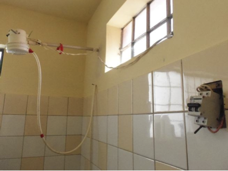 We wear our clothes many times before I wash them in the sink on our patio (picture on the right). Alas, the harsh detergent, hand scrubbing and sun-drying hastens their decomposition. Most - but not every - morning the village pumps water out to residents' water tanks. Ours holds 600 liters (150 gallons). If we have guests and all of us take showers, and have extra dishes and clothes to wash, we risk running out of water. We've done so only 7 or 8 times.