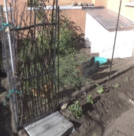 funky-but-functional shades for the light bulbs hanging from the ceilings. We pulled weeds till our hands bled, and planted veggies, herbs, and later, potatoes and corn. Jeff fenced off part of a garden and built a thrifty hen house out of scrap roofing metal and Styrofoam. I made a gate out of branches pruned from our apple tree while the theme from Gilligan's Island played in my head. We bought egg-laying chickens, Dorie, Millie, and Chicha - short for Pollo (chicken) Dorado, Milanesa, and Chicharon, essentially three local variations on "fried." Alas, Dorie and Millie stopped laying about a month ago. They became gifts for Max, who farms the field next door. "Muy rico," he told us. Very tasty!