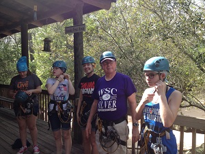 Today our host families drove us back to their church at 7:30am in order for our group to gather up. After talking about the day's scripture and reading the day's letter from previous seniors on tour, we started the drive toward the zip lining course& conuing/kayaking place. A good portion of the group went zip lining, but also another went kayaking/conuing instead. The zip lining course reached over 60ft high at times, and the grand finale line was a good 900feet long. Everybody seemed to love the three hours of zipping over the beautiful woods, and a clear river at the end! Our instructors who guided us along the course were some of the friendliest people and shared some of the coolest stories, especially about the nature around us. The other group that went canoeing and kayaking seemed to have a ton of fun also, and definitely got their tan on under the afternoon sun!