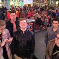 From there we split up into groups and explored the city. Some of the groups went to China Town and Little Italy, others went to Time Square to explore the theatre district. Other activities for some included a subway ride into Brooklyn, lunch in an area called DUMBO and a walk back across the Brooklyn Bridge. A group that left at 5:30 AM to stand outside GMA with their signs for everyone to see.