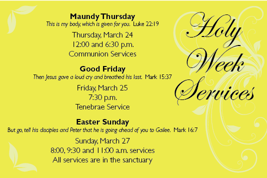 Ordering for Easter flowers begins March 1. There are envelopes in the pews to be used for ordering. If you would like to purchase a plant, please fill out the information on the front of the envelope and enclose a check. You may indicate on the envelope if you would like the flowers in memory of someone or in honor of someone. Place your order in the offering plate on Sunday or bring it to the church office.