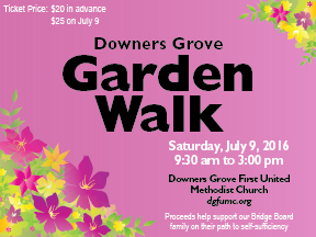 The 9th Annual Downers Grove Garden Walk will give you an opportunity to view some of the most beautiful gardens in the area. The Garden Walk is a fundraiser benefitting the Bridge Board of the Downers Grove First United Methodist Church. The Bridge Board is a program partner with Bridge Communities, a 501(c)(3) non-profit organization whose focus is to transform the lives of homeless families by guiding them to a better future. This mission is accomplished by providing housing, mentoring, direction, hope, encouragement and a stable environment so that families may become self-sufficient and sustain their independence. Every family resides in DuPage County.