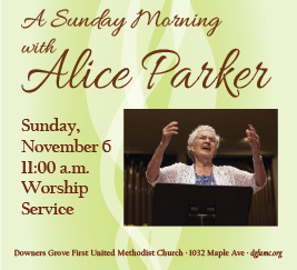 DGFUMC is hosting international choral celebrity, Alice Parker, the woman who shaped the face of choral music in America, and who will lead the congregation in discovering the beauty in hymn singing on Sunday, November 6 at our 11:00 a.m. worship service. She will build the musicality of each and every person present; and this service is one you will remember for years to come. At 90 years old, Mrs. Parker is making her victory lap, and this trip to the Midwest is to be one of her last out of her home state of Massachusetts.