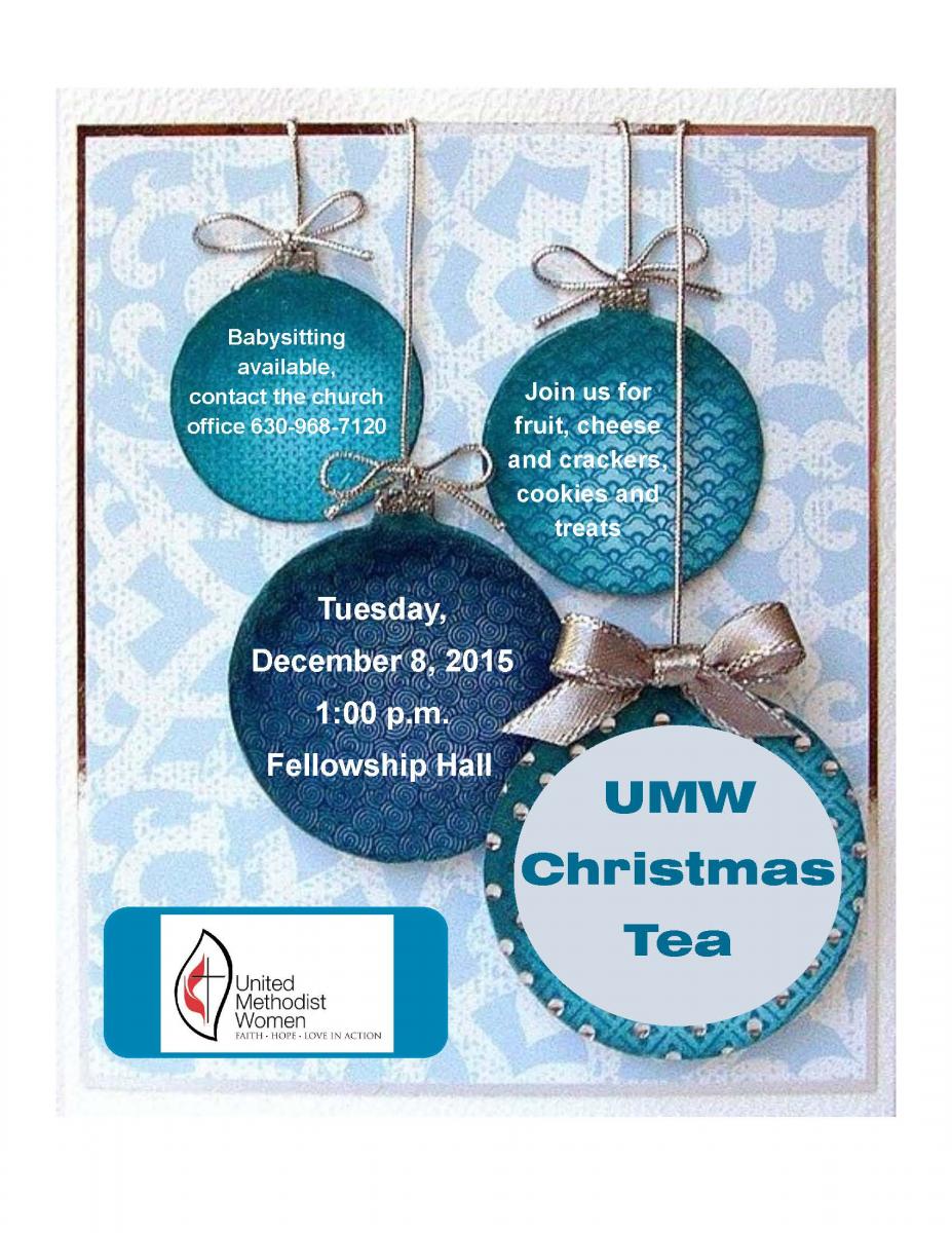 Before holiday events stack up, mark your calendars for the United Methodist Women Christmas Tea. Join us for fruit, cheese and crackers, cookies and treats.