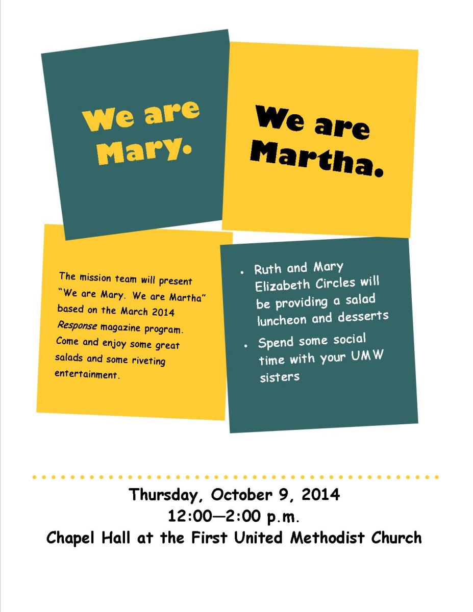 Stop by the Parlor this Sunday between the worship services to support the mission of the United Methodist Women.